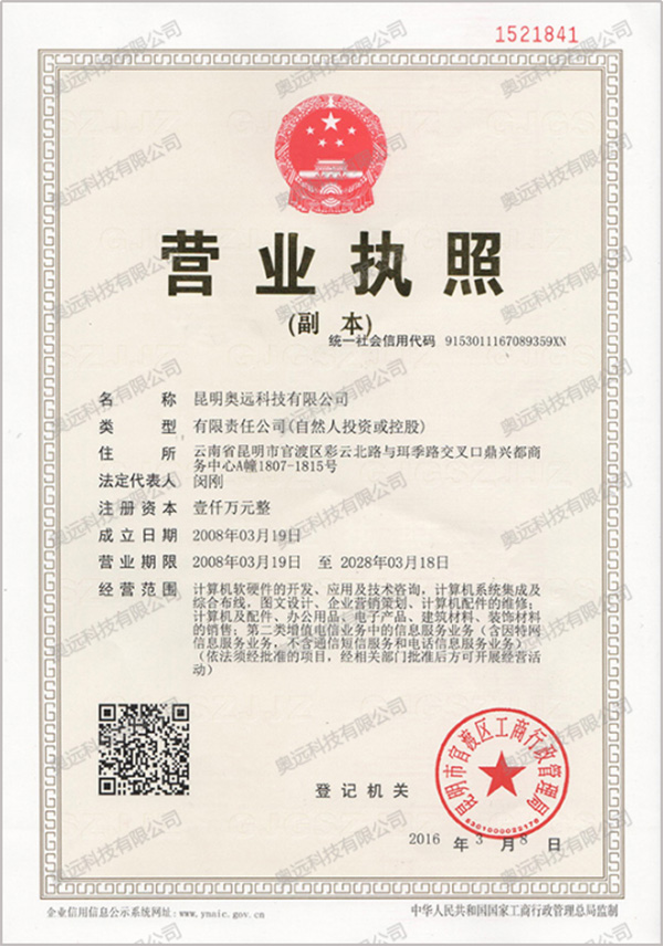 昆明奧遠(yuǎn)科技有限公司成立于2008年,注冊(cè)資金1000萬(wàn)元,是一家專業(yè)從事系統(tǒng)開發(fā)、網(wǎng)站建設(shè)、移動(dòng)端應(yīng)用(wap、微信、APP)、新媒體推廣運(yùn)營(yíng)等互聯(lián)網(wǎng)業(yè)務(wù)的高新科技企業(yè),是國(guó)內(nèi)率先的“互聯(lián)網(wǎng)+”解決方案提供商。公司秉承著“為客戶創(chuàng)造價(jià)值!”的經(jīng)營(yíng)理念,已為眾多品牌企業(yè)搭建好有效的互聯(lián)網(wǎng)平臺(tái),推動(dòng)企業(yè)輕松跨入“互聯(lián)網(wǎng)+”時(shí)代,是中國(guó)西南地區(qū)頗具影響力的信息化建設(shè)公司之一。